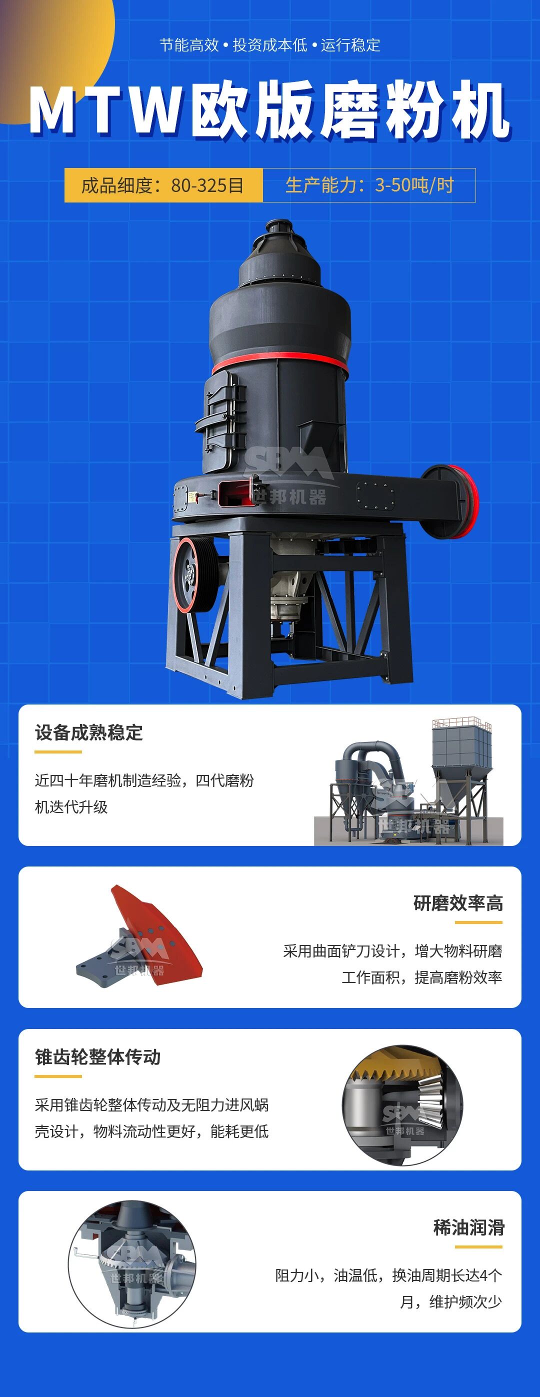该方案先通过专用烘干设备将原煤水分降至适宜范围,再进入磨粉主机进行高效粉磨,确保产品质量稳定可靠。上海世邦推荐MTW系列欧版磨粉机,整机采用锥齿轮整体传动,三大传动系统均为稀油润滑,具有占地面积小、投资小、见效快、维护方便、节能环保等优势。